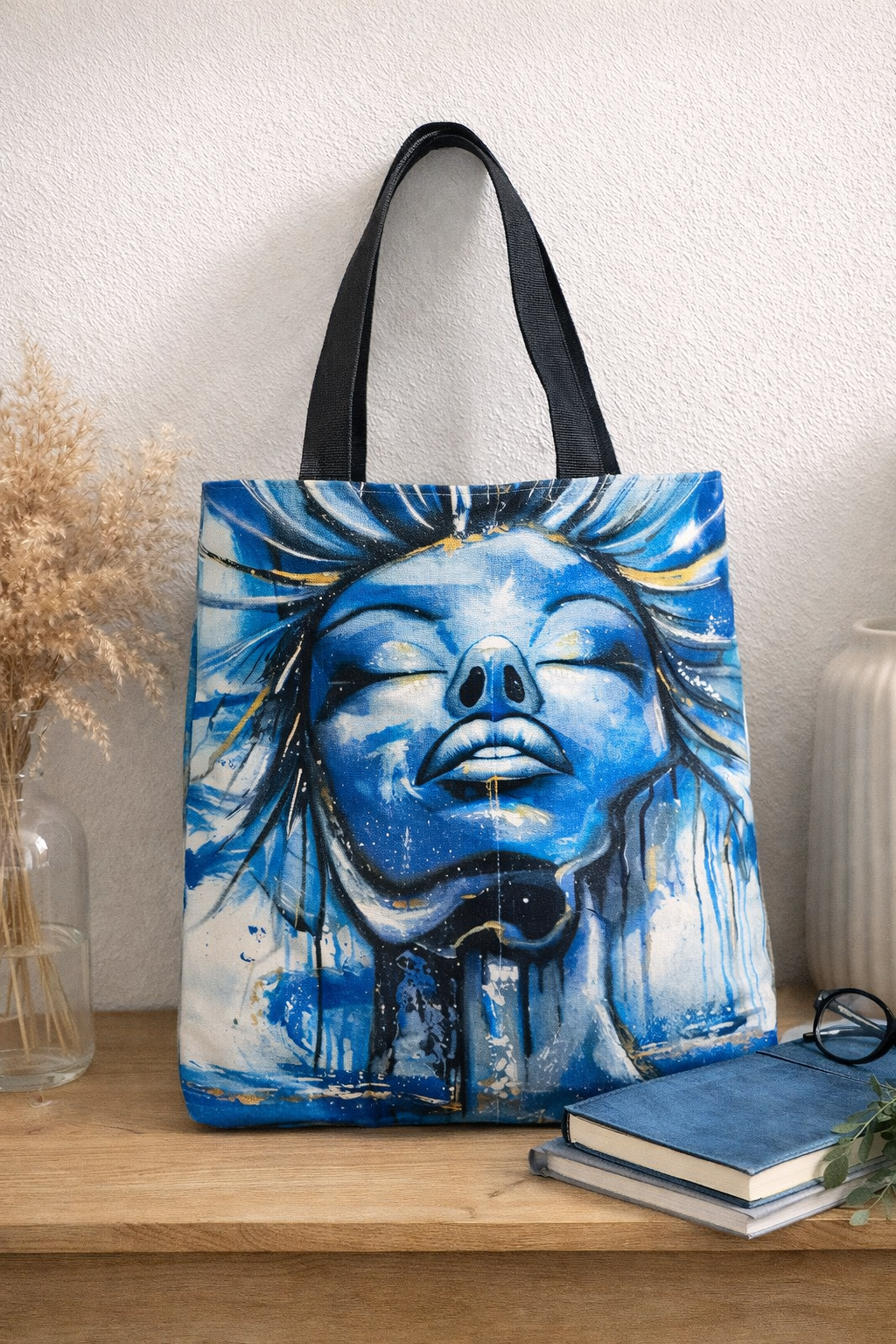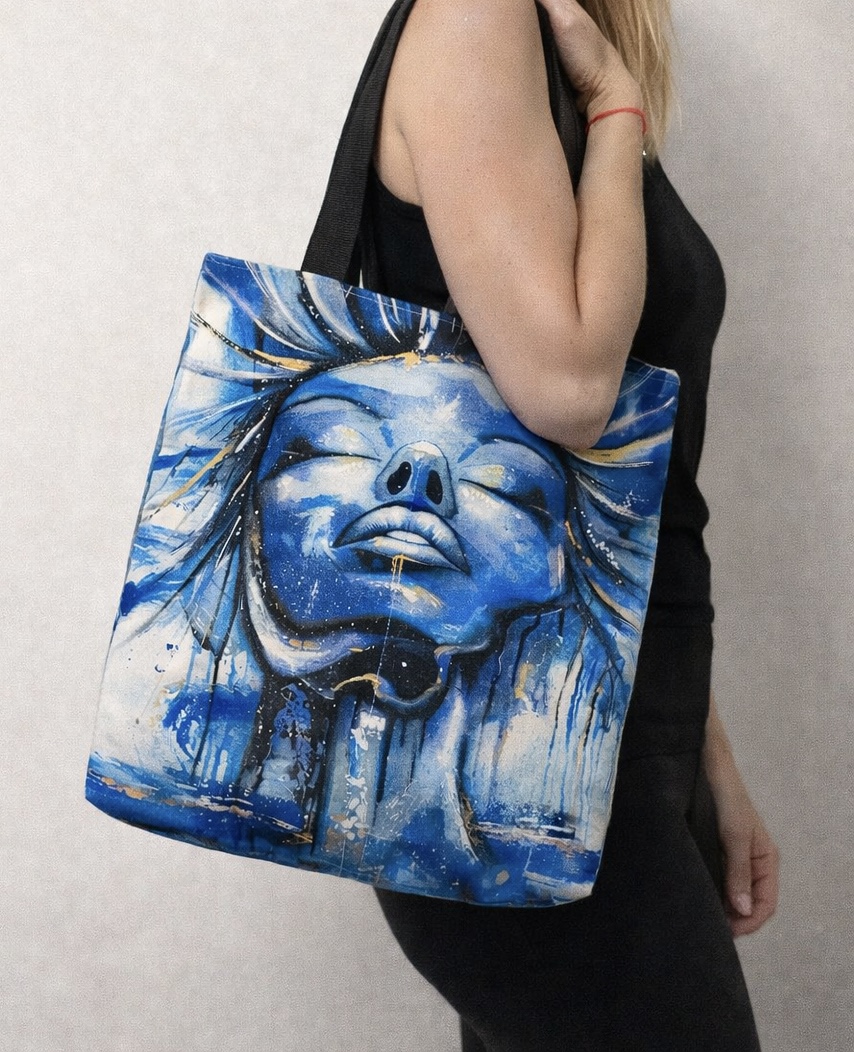 Stylová taška s autorským tiskem z originálního obrazu. Lehká, ale pevná, ideální na běžné nošení, nákup i volný čas. Díky výraznému motivu je taška nejen praktickým doplňkem, ale i nositelným uměním.